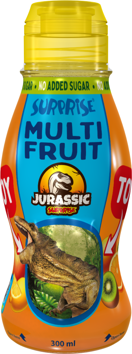 Discover the Jurassic Surprise Drinks collection! Explore exciting figurines inspired by the thrilling world of dinosaurs, adventure, and prehistoric discovery. Plus, enjoy refreshing drink flavors, each paired with a surprise hidden in the cap. A bold and fun choice for dinosaur fans ready for a Jurassic adventure in every bottle!